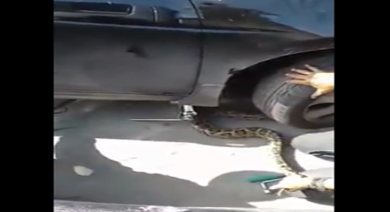 بالفيديو .. لحظة إخراج ” ثعبان ” ضخم من محرك سيارة