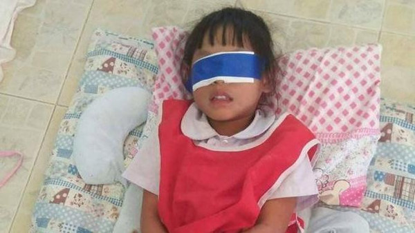 عقاباً على تمزيق ورقة .. معلمان تايلنديان يعصبان عيني طفلة و يقيدان يديها