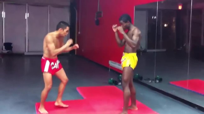 بالفيديو .. مدرب ” مواي تاي ” يكسر قدم منافسة بضربة واحدة !