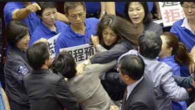 بالفيديو .. معركة داخل برلمان تايوان شاركت فيها النساء