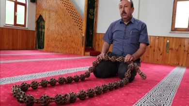 دون مواد لاصقة .. نجار تركي يصنع مسبحة بطول 185 سم