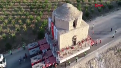 تركيا تبدأ عملية معقدة لنقل حمام تاريخي ضخم ( فيديو )