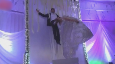بالفيديو .. ساحر تونسي يطير بعروسه في حفل زفافهما !