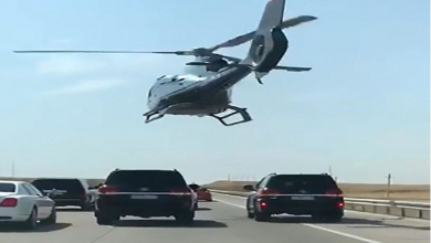 في كازاخستان .. مروحية تزف عروسين و هي تطير على بعد أقدام فوق السيارات ( فيديو )