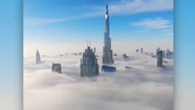 بالفاصل الزمني .. مشهد مذهل للضباب يلف برج خليفة في دبي ( فيديو )