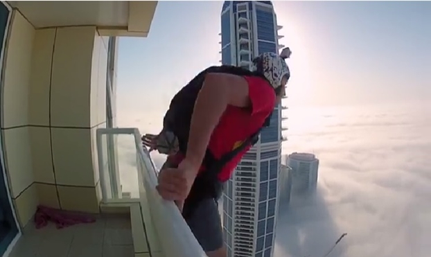 بالفيديو .. متهور يقفز بين الغيوم من شرفة ناطحة سحاب في دبي