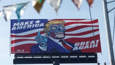 ترامب دخيل و هزيل يظهر على لافتة في مكسيكو سيتي