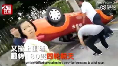 بالفيديو .. سيدة صينية ” تقلب السيارة ” في محاولتها الثامنة لنيل رخصة قيادة !