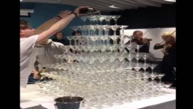 عامل روسي مرتبك يحول استعراض الكؤوس إلى كومة زجاج ( فيديو )