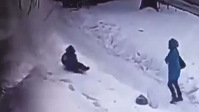 مشاهد قاسية لسقوط كتلة ثلجية على طفل في روسيا ! ( فيديو )