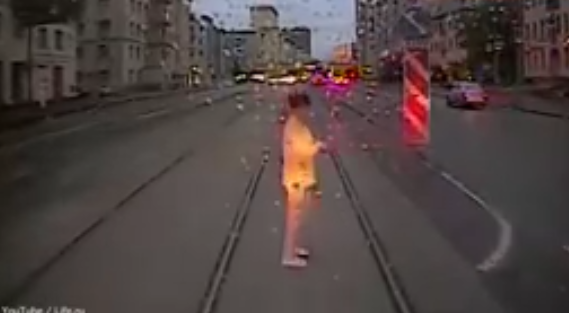 بالفيديو .. ” ترام ” يدهس امرأة روسية انشغلت بالكتابة على هاتفها وسط الشارع