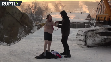 روسي يتحدى برد سيبيريا و يقوم بمغامرة في درجة حرارة بلغت ناقص 37 ( فيديو )