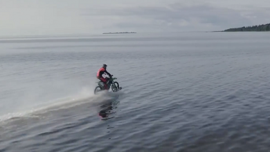 متسابق روسي يسير بدراجته النارية فوق المياه لمسافة طويلة ! ( فيديو )