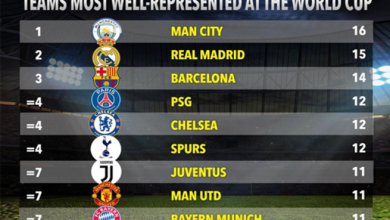 مانشستر سيتي و ريـال مدريد أكثر الأندية تمثيلاً في مونديال روسيا