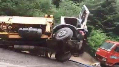 سيول متشكلة بسبب الأمطار الغزيرة تبتلع مضخة إسمنت و شاحنة في تركيا ( فيديو )