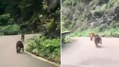 ذعر بسبب دبين يركضان على طريق سريع في مدينة تركية ! ( فيديو )