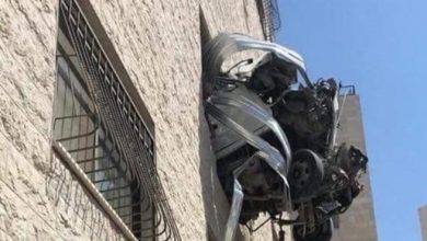 أغرب حادث سير في فلسطين .. كيف وصلت السيارة إلى نافذة البناء ؟