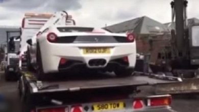 الشرطة البريطانية تسحق سيارة ” فيراري ” فارهة ! ( فيديو )