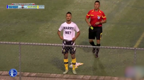 بالفيديو .. لاعب يتلقى بطاقة صفراء بسبب ” عرض زواج “