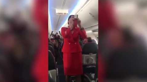 بالفيديو .. هذا ما يحدث للمضيفة عندما تمتلئ الطائرة بالمشجعين