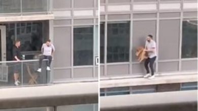 رجل كندي يجازف بحياته على حافة الطابق السابع لإنقاذ قطة ( فيديو )