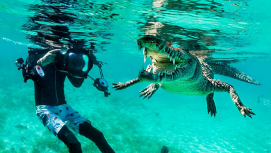 مغامر بلجيكي يتحدى الخوف و يسبح مع تمساح !