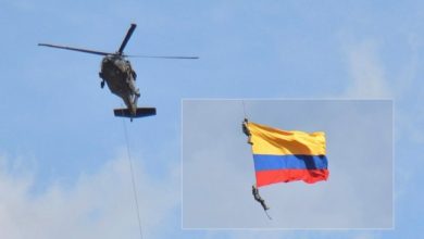 لحظة سقوط رجلين من مروحية في كولومبيا ( فيديو )