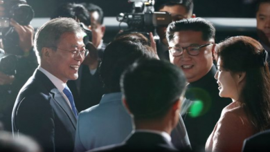كيم جونغ أون يدفع رجلاً أراد تصوير زوجته في قمة كوريا ! ( فيديو )