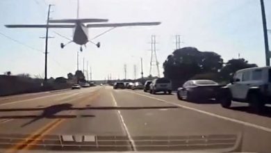 لحظة هبوط طائرة على طريق سريعة في لوس أنجلوس ( فيديو )