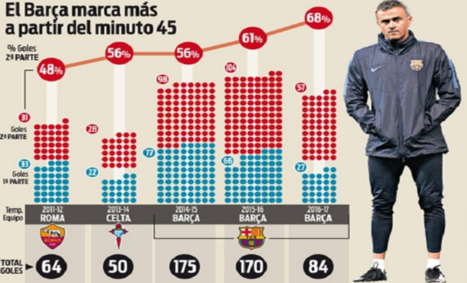 التسجيل في الشوط الثاني .. ميزة هجوم المدرب الإسباني لويس إنريكي