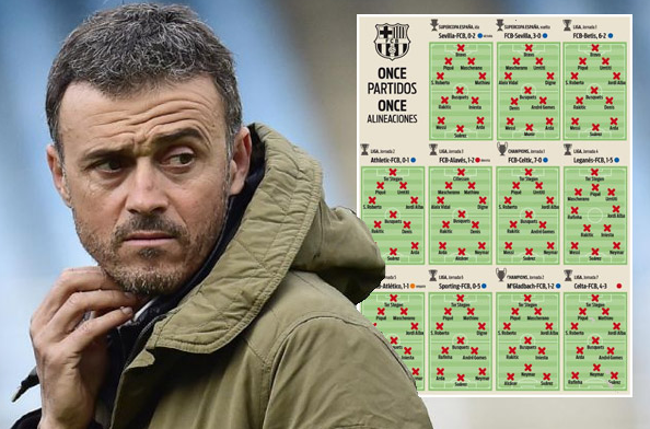 لويس إنريكي غير التشكيلة الأساسية لبرشلونة خلال 11 مباراة !