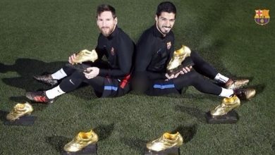 ليونيل ميسي و لويس سواريز يتفاخران بأحذيتهما الذهبية