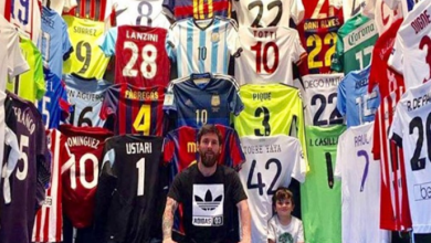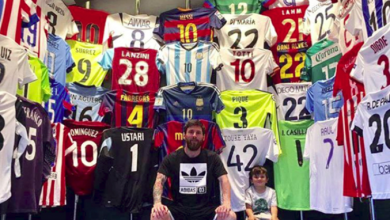 ليونيل ميسي يستعرض قمصان خصومه في بيته