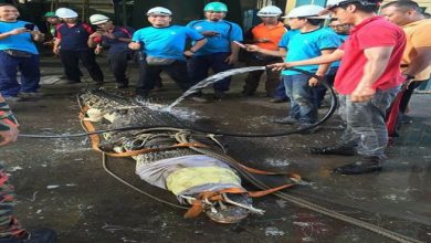 بالفيديو .. إنقاذ ” تمساح ” ضخم من مصرف مياه في ماليزيا
