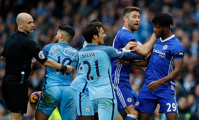 اشتباكات بالأيدي في نهاية مباراة مانشستر سيتي و تشلسي ( فيديو )