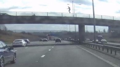 رجل بريطاني يخاطر بحياته و يمشي على سور جسر معدني شاهق