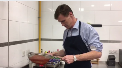 بالفيديو .. السفير البريطاني في مصر يتعلم طهي ” الفتة ” بالعيد !