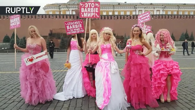 دمى ” باربي ” تتظاهر في الساحة الحمراء وسط موسكو ( فيديو )