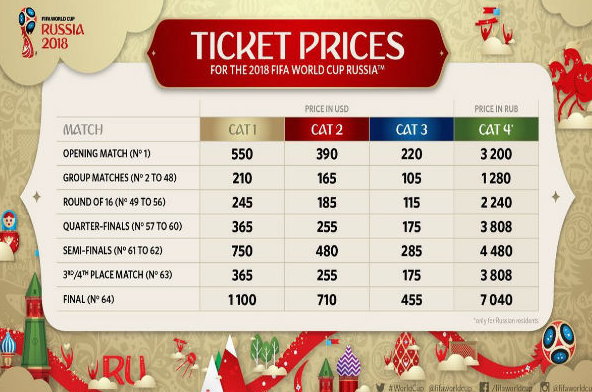 105 دولارات ثمن أرخص تذكرة لحضور مباريات مونديال 2018