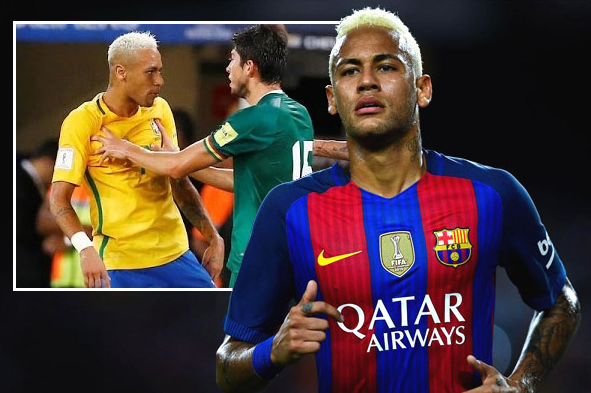 بالفيديو .. لكمة لاعب منتخب بوليفيا تغرق وجه نيمار في الدماء