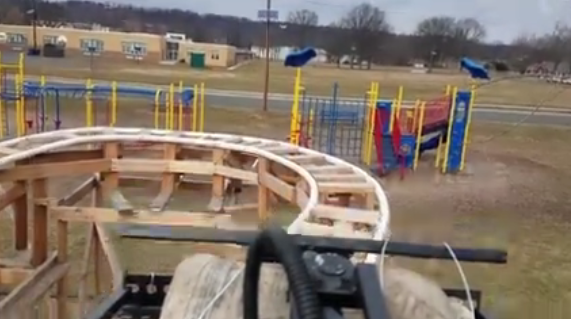 بالفيديو .. أمريكي يبني لعبة أفعوانية كاملة في حديقة منزله