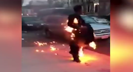 بالفيديو .. أمريكي يتجول في الشوارع و النيران تلتهم جسده !