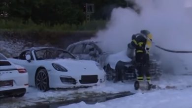 ألمانيا : حريق يلتهم 12 سيارة بورش و الشرطة تعتقد أنه مفتعل ( فيديو )