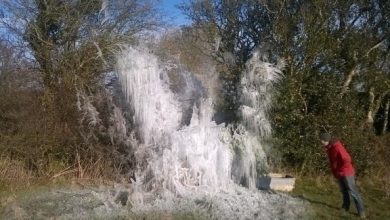 انفجار أنبوب ماء يشكل تماثيل جليدية رائعة في ويلز