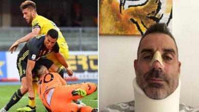حارس كييفو يشكر ” الأسطورة ” رونالدو بعد أن كسر أنفه !